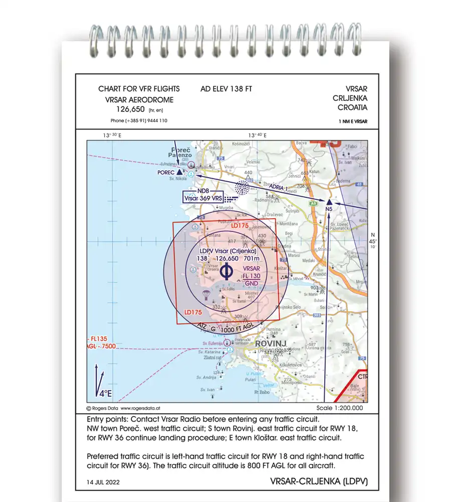 Das Kroatien Rogers Data VFR Trip Kit Anflugblätter Flugplatzkarten 200k ist auch digital erhältlich.