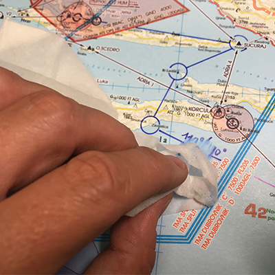 Sie können die Rogers Data VFR Luftfahrtkarten mehrfach mit unserem optimierten permanent RDtech® Stifteset beschreiben. Die eingezeichneten Flugwege und Beschriftungen können mit unserem optimierten RDtech® Spray oder unseren RDtech® Reinigungstüchern rückstandslos entfernt werden. All das können Sie mehrmals wiederholen. Ihre laminierte RDtech® VFR Luftfahrtkarte sieht immer wie neu aus.
